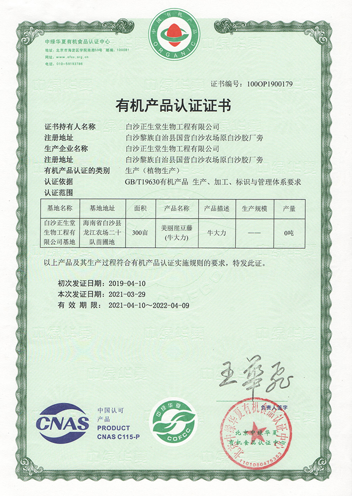 白沙有机认证